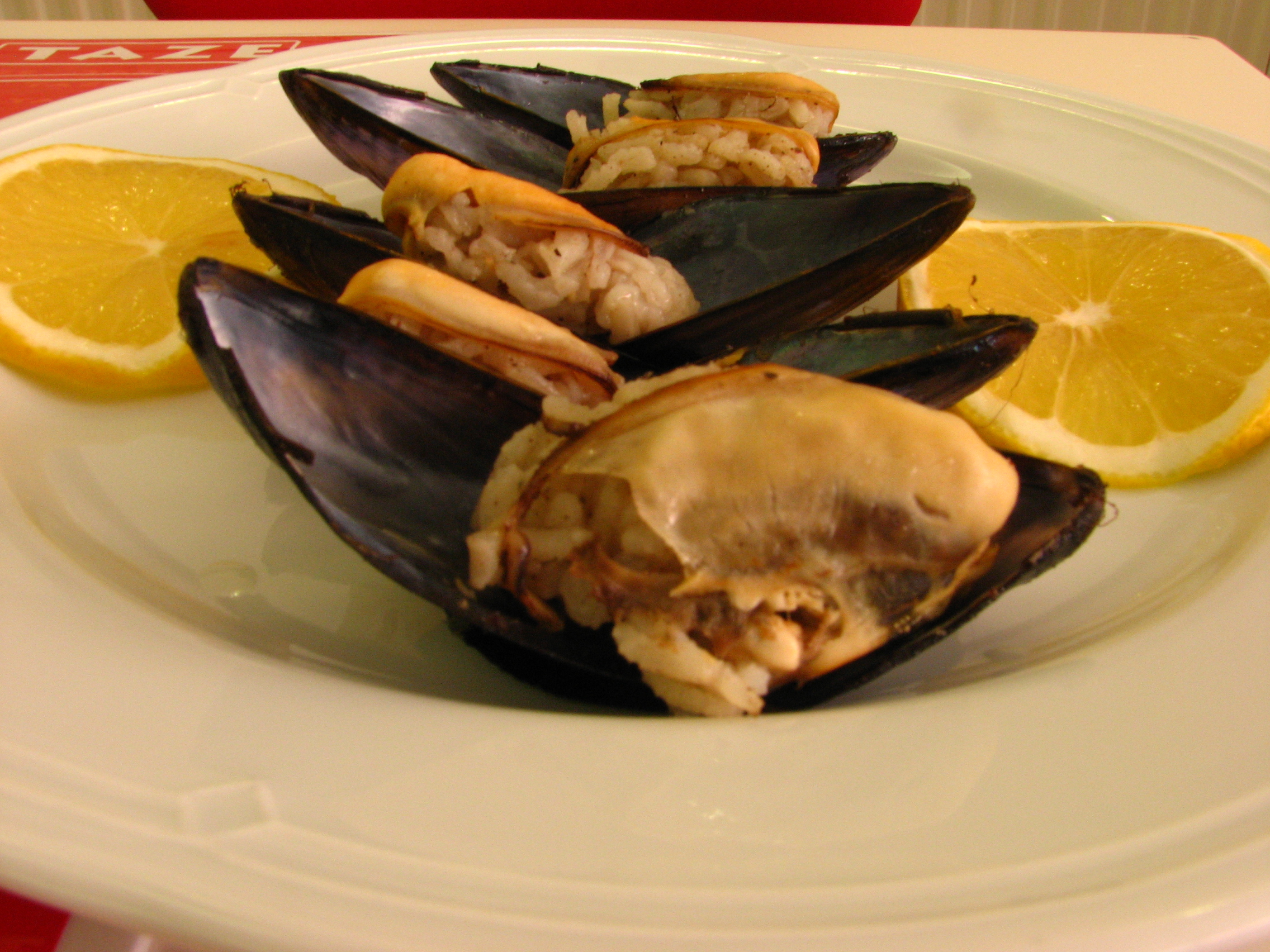 1- 30- 35 tane büyük ve siyah midyeye bir avuç tuz atılıp 1- 2 saat bırakılır. Pirinç 13 su bardağı 240 gr. Yapımı son derece kolay olan ancak bazı püf noktalarının da kaçırılması durumunda aslında lezzetinin azabileceği bir yiyecektir. 2- Midyelerin düz taraflarına bıçak sokularak kitap gibi ikiye açılır.